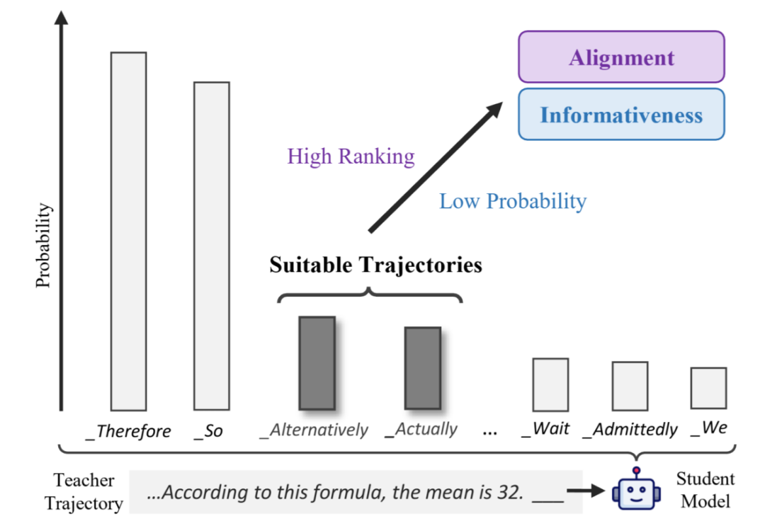 因此,informativeness与alignment并非天然冲突。恰恰是同时满足这两点的token,构成了最适合student学习的推理数据。