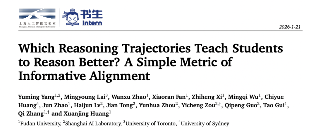 类似的现象同样出现在大语言模型的推理蒸馏中。来自能力更强的教师模型的思维链,可能过于晦涩,学生模型难以掌握其推理模式;而与学生认知相近的教师模型,其推理轨迹又常常缺乏新信息,难以带来实质提升。