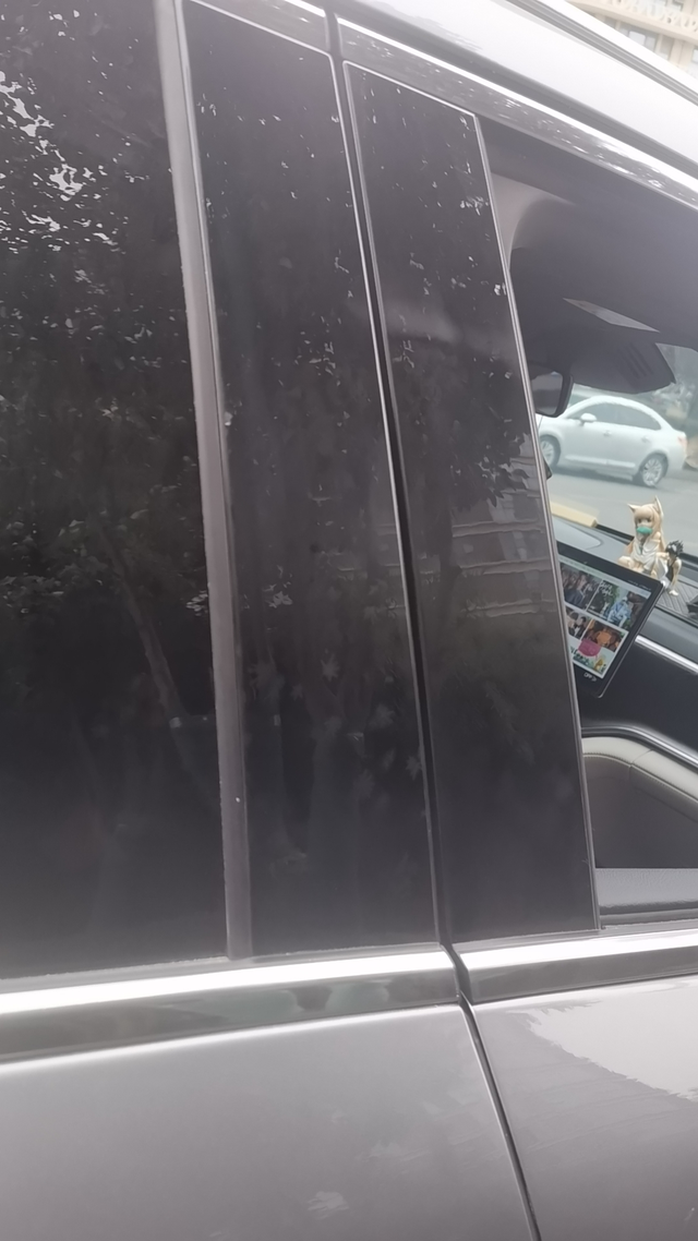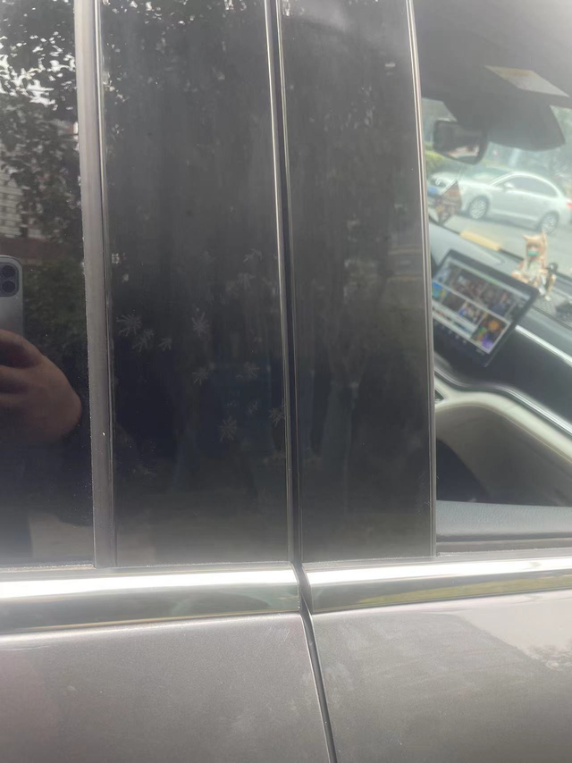比亚迪宋B柱C柱钢琴烤漆面板炸了 我是21款比亚迪宋plus混动车主,右侧车门碰了一下,年后去喷漆,前天刚修好回来,媳妇上车时无意间发现副驾一侧C柱钢琴面板有雪花状的东西,还以为我贴的膜结果我下车一看好嘛右侧带有钢琴烤漆的地方全都这样了