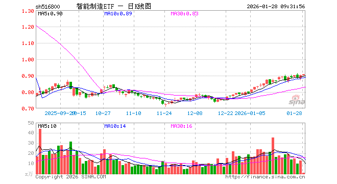 智能制造ETF(516800)业绩比较基准为中证智能制造主题指数收益率,管理人为华宝基金管理有限公司,基金经理为张放,成立(2021-01-29)以来回报为80.40%,近一个月回报为14.73%。