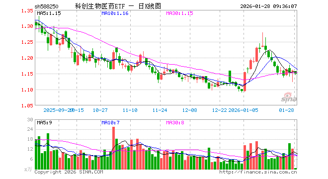 科创生物医药ETF(588250)业绩比较基准为上证科创板生物医药指数收益率,管理人为鹏华基金管理有限公司,基金经理为林嵩,成立(2025-03-12)以来回报为15.50%,近一个月回报为2.90%。