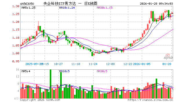 央企科技ETF易方达(563050)开盘涨0.40%,重仓股海康威视涨0.19%,深南电路涨0.00%