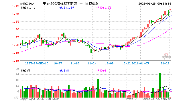 1月28日,中证500增强ETF南方(560100)开盘涨0.28%,报1.420元。中证500增强ETF南方(560100)重仓股方面,巨人网络开盘跌0.95%,天山铝业涨0.80%,中矿资源涨0.32%,金发科技跌2.38%,先导智能跌0.26%,西部矿业涨0.11%,中国卫星涨0.62%,豪迈科技跌0.07%,金风科技跌0.98%,兴森科技涨0.08%。