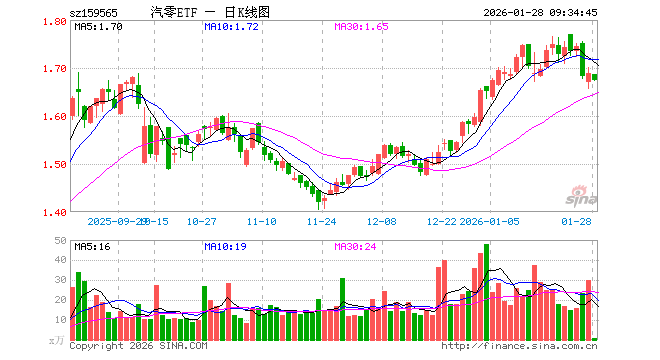 1月28日,汽车零部件ETF易方达(159565)开盘跌0.12%,报1.686元。汽车零部件ETF易方达(159565)重仓股方面,汇川技术开盘跌0.56%,三花智控跌0.61%,福耀玻璃涨0.24%,拓普集团涨0.03%,长盈精密跌1.03%,赛轮轮胎涨0.70%,德赛西威跌0.69%,双环传动跌0.16%,华域汽车跌0.05%,银轮股份跌0.33%。