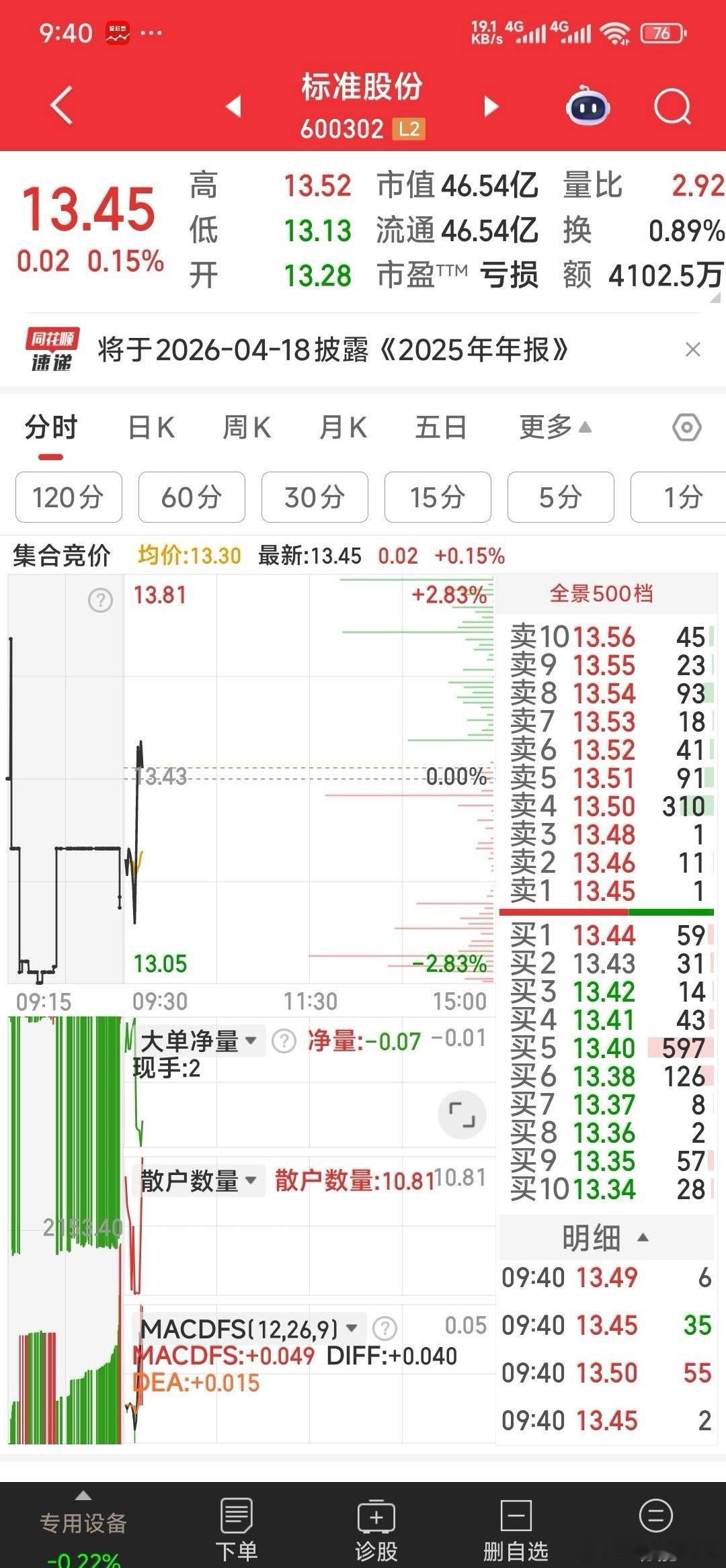 【手中三牛战况】标准股份继续持有到16。达安基因加了仓,苏州高新做了一把T+0。