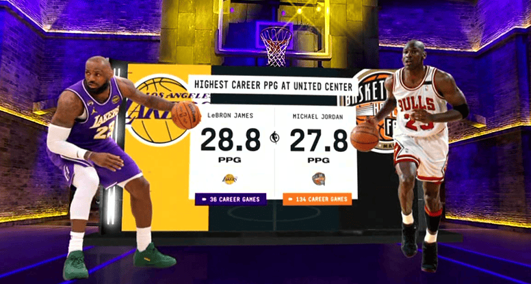 根据数据统计,公牛主场联合中心最高场均得分榜单:詹姆斯36场比赛场均28.8分,乔丹134场比赛27.8分。