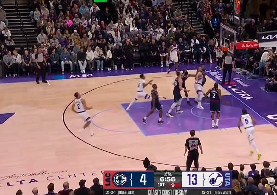 虎扑01月28日讯NBA常规赛,快船对阵爵士的比赛正在进行中。