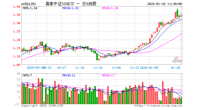 1月28日,截止午间收盘,国泰中证500ETF(561350)涨0.52%,报1.351元,成交额937.22万元。国泰中证500ETF(561350)重仓股方面,英维克截止午盘涨6.13%,信维通信跌3.01%,巨人网络跌4.58%,中国卫星跌1.85%,航天电子跌5.01%,中矿资源跌0.65%,先导智能跌3.69%,卧龙电驱跌1.69%,赤峰黄金涨8.87%,新奥股份涨0.41%。