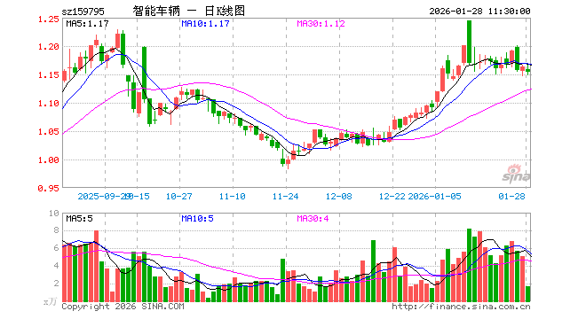1月28日,截止午间收盘,智能汽车ETF汇添富(159795)跌0.77%,报1.154元,成交额187.15万元。智能汽车ETF汇添富(159795)重仓股方面,拓普集团截止午盘跌2.12%,豪威集团涨2.42%,科大讯飞跌0.74%,比亚迪跌0.64%,长安汽车跌1.57%,赛力斯跌3.31%,芯原股份跌4.86%,立讯精密涨0.06%,德赛西威跌2.35%,北京君正涨8.72%。
