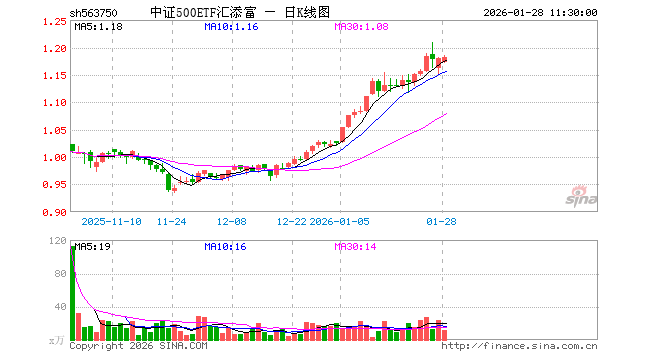 中证500ETF汇添富(563750)业绩比较基准为中证500指数收益率,管理人为汇添富基金管理股份有限公司,基金经理为孙浩,成立(2025-10-22)以来回报为17.68%,近一个月回报为14.65%。