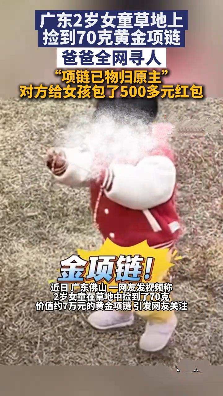 2岁女童草地玩耍,竟捡到一条70克重的金项链!这“天降之财”让人又惊又喜。小朋友