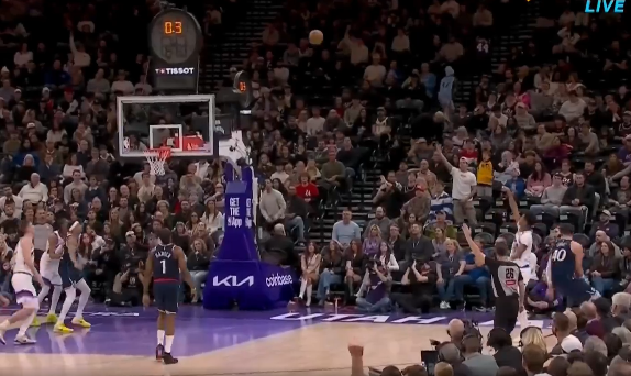 球进灯亮!埃斯-贝利压哨三分投进,爵士半场54-53领先快船