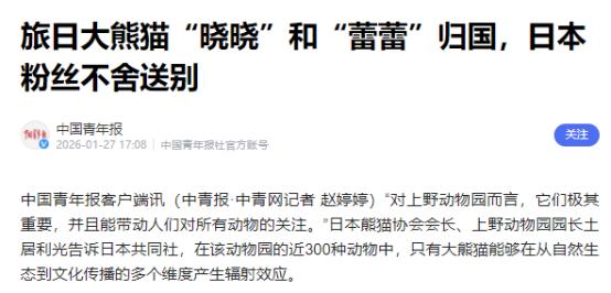 晓晓蕾蕾头也不回登车归国,日本民众的眼泪根本留不住国宝的归途,这哪里是离别,更是国宝使命落幕的必然,是中国底气最萌的彰显! 半世纪熊猫外交,咱的国宝带去了温柔与欢乐,也让日方赚足了流量与经济效益,如今合约到期,归家本就是定数,那些撕心裂肺的不舍,说到底不过是舍不得这颗摇钱树。 回溯到1972年中日邦交正常化,首批大熊猫康康和兰兰东渡日本,刚在上野动物园展出就引爆热潮,当天排队的人能排两公里长,五万人抢一千八百个参观名额,把动物园的门槛都快踩平了。从那以后,熊猫就成了上野地区的流量密码,不管是繁殖幼崽还是日常展出,总能带动周边商圈一起狂欢,商家借着熊猫热度搞折扣、推周边,赚得盆满钵满。 晓晓和蕾蕾这对双胞胎2021年在日本出生,那会儿正赶上疫情阴霾笼罩,这俩小家伙的到来直接成了日本民众的精神慰藉,也顺势接过了“吸金大旗”。按日本专家测算,光是这对兄妹每年就能给东京带来超过三百亿日元的经济效益,折算成人民币差不多十五亿元。上野动物园每年五十多亿日元的门票收入里,八成以上都靠熊猫馆撑着,园内的熊猫玩偶、文具等周边年销售额能达三十二亿日元,连周边的餐饮、零售生意都跟着沾光,一年能多赚一百八十五亿日元。之前它们的姐姐香香更厉害,累计创造的经济效益高达六百到六百五十亿日元,在疫情期间硬生生撑起了一片消费市场。 本来晓晓和蕾蕾的租借合约要到2026年2月才到期,上野动物园早就提前升级了馆舍,满心期待能和中方谈成续租,接着靠国宝盈利。可日方偏要自己搞事情,日本首相高市早苗发表涉台错误言论,不仅不道歉,还公然和台湾地区人员互动,触碰中方核心利益。这种情况下,政治互信彻底破裂,中方自然没了续租的打算,还和日方协商后把归国时间提前了一个月,定在1月27日启程。消息一出,日本民众急了,上野动物园最后开放参观的日子里,每天都有上万人赶来送别,甚至有人提前几天就守在园外,园方不得不改成抽签预约,每天只放四千八百个名额,依旧供不应求。 日本民间更是掀起了请愿续租的热潮,两百多万人参与签名,社交平台上全是“留住熊猫”的话题,连相关产业链都开始慌了神。熊猫主题餐厅的客人少了近三成,生产熊猫玩偶的工厂已经开始裁员,还有三家跨国企业直接取消了在上野动物园设办事处的计划,有人预测当地商铺空置率会从百分之五涨到百分之十二。日本旅游业协会也愁坏了,估算2026年赴日中国游客可能减少百分之十五以上,单餐饮和住宿行业就会少赚八百亿日元。可再着急也没用,中方的态度相当明确,没有诚意遵守中日共识,就别谈熊猫合作这回事。 反观中方,早就为晓晓蕾蕾的归国做好了万全准备,大熊猫保护研究中心专门给它们做了全面体检,还量身定制了检疫和运输方案,全程保障这俩小家伙的旅途安全。其实这不是中方故意为难,毕竟熊猫不管在国外出生还是长大,所有权从来都属于中国,按期归国本就是合约约定的内容。更关键的是,中方并非停止了熊猫外交,刚和马来西亚续签了熊猫合作的十年之约,还积极回应了法国总统马克龙的合作请求,只是合作的前提必须是相互尊重、守住底线。 从1972年到现在,五十多年的熊猫外交里,咱的国宝用温柔打破隔阂,也见证着中日关系的起伏。这次晓晓蕾蕾归国,不是结束友好交流的信号,而是中方底气的直接体现——朋友来了有好酒,可要是触碰红线、没了诚意,再好的合作也只能到此为止。日本民众的眼泪再真挚,也留不住违背共识的合作,更留不住本就属于中国的国宝。未来想再迎来熊猫的身影,日方终究要拿出实打实的诚意,守住中日邦交的基本盘,不然这长达半个世纪的熊猫情缘,只会彻底陷入空窗期。