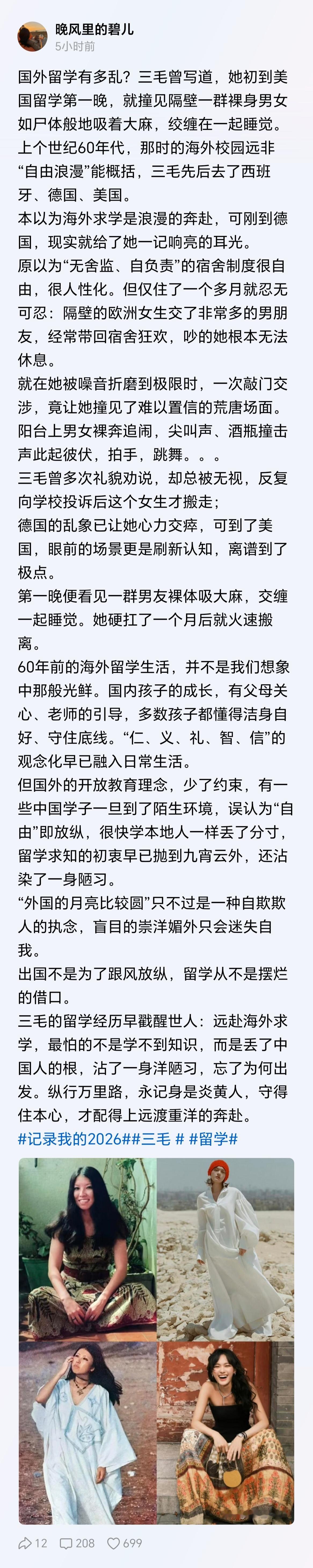 感谢老祖宗给我们定了那么多规矩:男女授受不亲;非礼勿视,非礼勿听,非礼勿言,非礼勿动;富贵不能淫,贫贱不能移;己所不欲,勿施于人。以前觉得迂腐,现在才深刻理解古人的用心:让中国人永远生活在人道,有最基本的道德观,不至于堕落退化成动物。