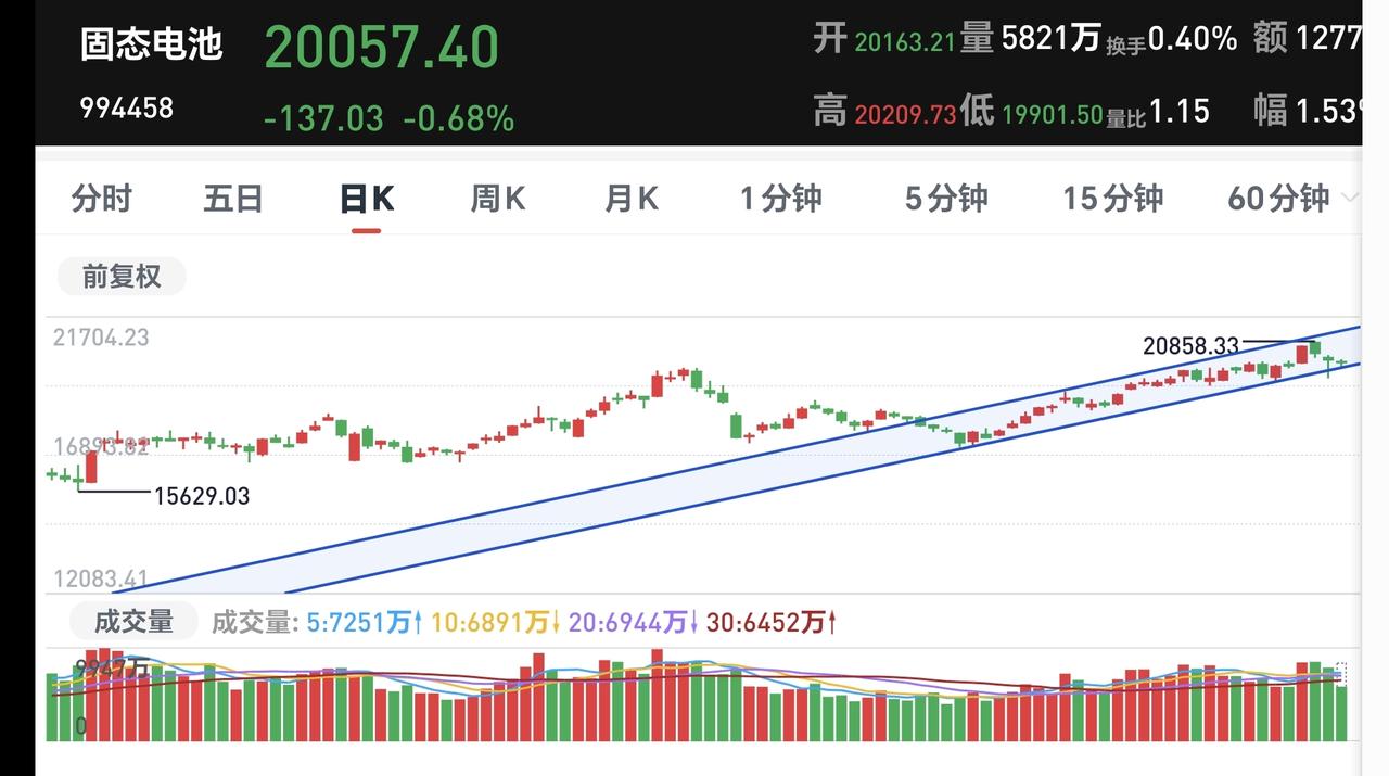 基金:创新药板块和固态电池板块,究竟应该怎么办 市场下午开盘以后冲高回落,一方面是两条线之间敞口很大,不支持市场大幅度上涨。另一方面是有关方面不想让市场现在进行大幅度上涨,但不管怎么样,最近往上大幅度上涨难度不小,我知道的是,没有哪一次有关方面想办的事情,办不成,办不到,办不好。 现在盘中指数涨跌不一,创业板指下跌了0.45%,盘中点位3327点,上证指数上涨了0.25%,盘中点位4150点。 整个股票市场,上涨1792家,下跌3581家,涨停57家,跌停25家,上涨家数少于下跌家数。 持有的基金中,盘中估值上涨幅度最大的三个板块是:兴全合宜,5G板块,证券板块,估值下跌幅度最大的三个板块是:可控核聚变板块,AI应用板块,军工板块,估值整体上涨了96元。 整个基金市场,上涨9782家,下跌9703家,上涨幅度超过5%的91家,没有下跌幅度超过5%的基金。 图9是今天基金的上涨排行榜,图10是今天基金的下跌排行榜,图11是ETF上涨幅度排行榜,图12是今天基金的加仓榜,图13是今天基金的减仓榜。 1:现在黄色线还是在蓝色线下方,两条线之间的敞口还是比较大,这样的情况下不支持市场大幅度上涨,即使涨上去也会掉下来。 2:现在两市累计成交21527亿,相比于昨天同期放量了3%,这是今天市场指数没有大幅度回落的原因,只要成交量放大,就说明市场交投活跃,就说明有资金在市场里面玩,就不支持市场大幅度下跌。 3:现在五天线位置是4136点,盘中点位4150点,是在五天线之上的震荡,今天点位最低的时候,也没有能够跌破五天线,说明到现在为止,并不能确定市场已经选择方向向上或者是向下,还是处于方向不明的状态。 4:看下面的截图14,这是主力资金进出板块的情况,主力资金净流入最多的三个板块是:央企板块,有色金属板块,小康产业板块,主力资金净流出最多的三个板块是:高端制造板块,新能源板块,机器人板块。 5:看下面的截图15,这是创新药板块日K线图,现在是处于日线级别短期上涨通道内,持有的人可以继续持有,想进场的人可以等待日线级别上涨通道下轨线附近。 看下面的截图16,这是创新药板块周K线图,现在的位置也是处于上涨通道内,距离上涨通道的下轨比较近,如果日线级别的位置到了上涨通道的下轨附近,估计周线级别也会处于上涨通道下轨线上,如果同时到达,是一个很好的进场考虑点。 很多人吐槽创新药板块,这是跟人的性格有关系的,创新药板块去年的上涨幅度还是可以的,但是可是许多人在夸的,这就像一个姑娘一样,年轻的时候也漂亮过,年轻的时候也被你追求过,年轻的时候也有可能被你得到过实惠,但当她年过三十的时候,你就对她进行各样的吐槽,这是你的不对,这是你的不懂,很多时候,少妇比少女还要妙,创新药板块还会有它的春天,创新药板块还会有它的丰润犹存。 6:看下面的截图17,这是固态电池板块日K线图,现在的位置处于这个上涨通道中,今天的下跌并没有跌破上涨通道的下轨线,短线持有的人完全可以继续持有,这个日线级别的上涨通道下轨线,就是短线持有者的持有条件。 看下面的截图18,这是固态电池板块周K线图,现在的位置处于这个上涨通道内,距离上涨通道的下轨线比较远,也就是说,近期都不会跌破这个上涨通道的下轨线,长线持有的人完全可以继续持有,这个周线级别上通道的下轨线,就是长线持有者的持有条件。 今天究竟应该怎么办?我会在评论区留言。 花1秒钟点赞,花30秒钟评论,就是对我最大的支持,谢谢大家的支持。