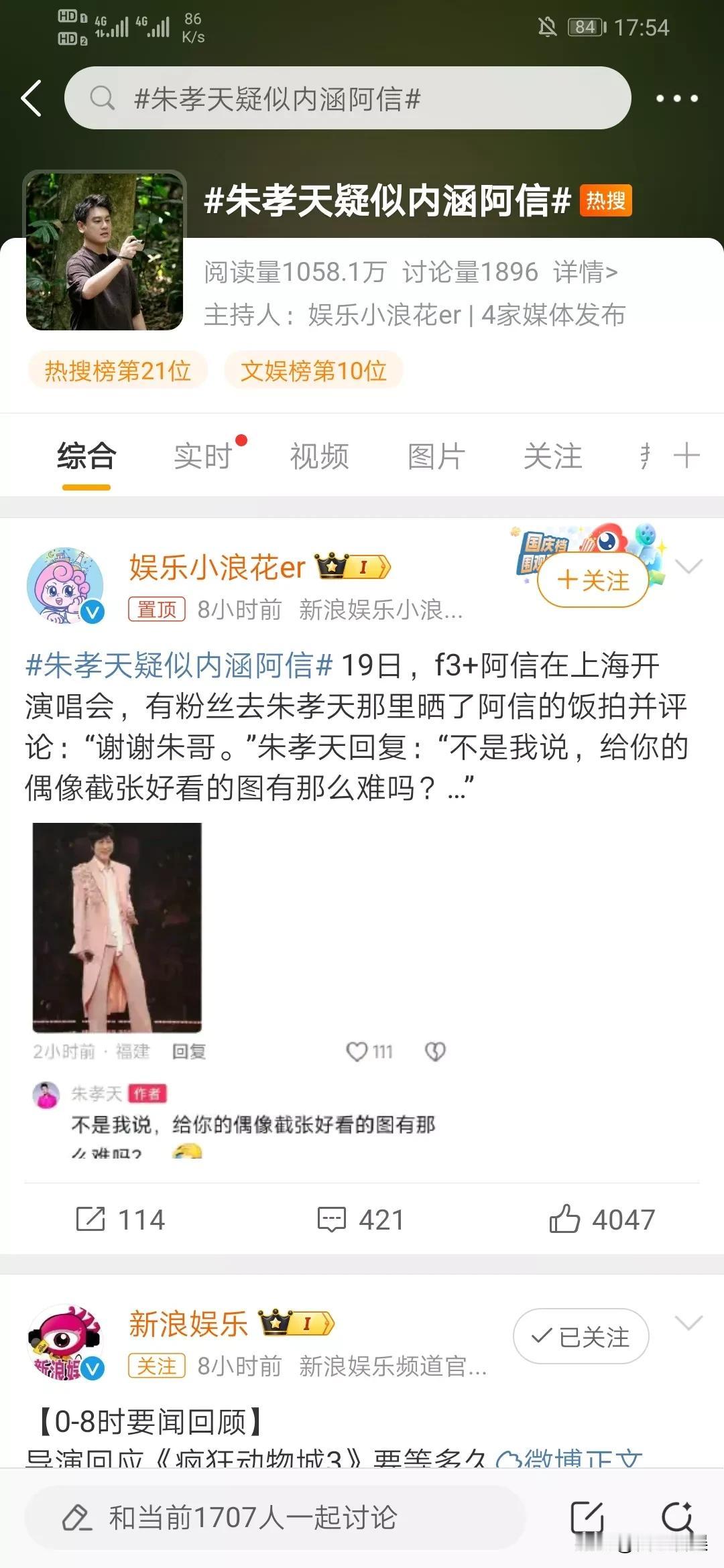 朱孝天又破防了? 12月20日,一则“朱孝天疑似内涵阿信”的话题,引起了关注和