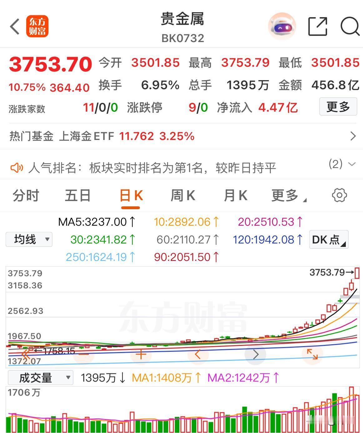 贵金属类个股还能追吗? 在趋势面前,终究还是格局小了。昨日发布趋势个股时,我觉得贵金属类涨幅已然颇高,便只写了中国黄金。怎料到今日它们依旧大幅上扬,整个板块一片火热。 不过,我们绝对不会追高。若要相信趋势,就该早早相信;若不信,那就索性不信。切勿明日一时冲动追进去,最后被困在高位。还是等股价回调至 20 日线时再做考量。 黄金价值分析 黄金大盘分析 贵金属行情走势 贵金属行情分析 黄金还能回调 贵金属行情