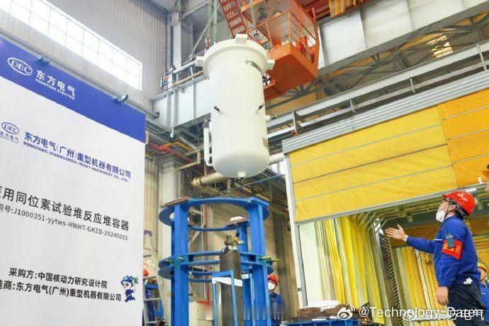 最新科技消息 【我国成功交付全球功率最高溶液型医用同位素试验堆反应堆容器】由中国核动力研究设计院设计采购、东方电气集团所属东方重机承制的全球功率最高溶液型医用同位素试验堆反应堆容器正式发运,标志着我国医用同位素产业迎来重要节点。医用同位素是核医学诊疗的重要物质基础,广泛应用于心脑血管疾病、恶性肿瘤、神经退行性疾病等重大疾病诊疗。该设备是医用同位素试验堆的核心装置,正式投产后将有力缓解长期依赖进口的局面。另外,目前全球超过 80% 的医用同位素依靠反应堆辐照生产。此次交付的堆容器作为医用同位素生产的源头设备,将为我国构建自主可控的医用同位素供应体系提供关键支撑。全球功率最高溶液型医用同位素堆位于四川省夹江县,旨在打造我国医用同位素及药物的新国家名片,预计 2027 年建成投产。投运后可实现钼-99、碘-131 等医用同位素分别 10 万居里和 2 万居里的年生产能力。值得一提的是,在设备研制过程中,东方重机还围绕医用同位素生产核心装备的自主化目标,先后突破了大深度盲孔控制棒导向管制造、长尺寸导向管焊接与位置精度控制、超高精度腐蚀挂片管制造、高精度气体出口接管球面装焊等一系列关键技术,实现了该型装备制造技术的全面自主掌握。