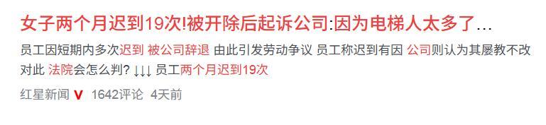 女子两个月迟到19次,被公司开除!女子不服,起诉公司称因为电梯人太多了!法院判了