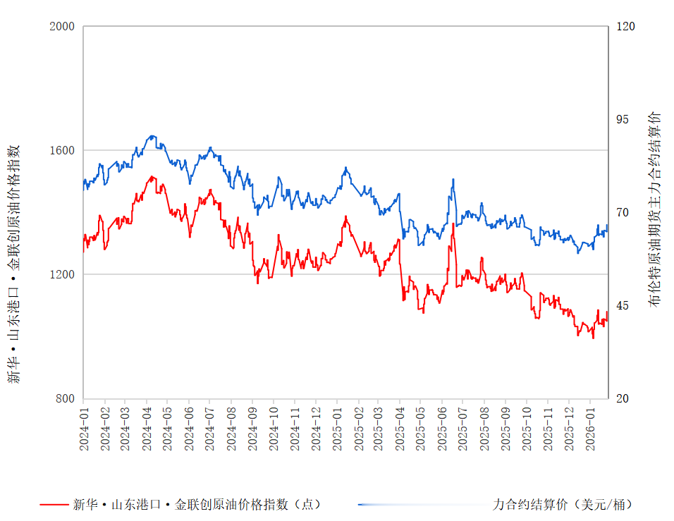 新华财经北京1月28日电(郑大伟)截至2026年1月27日,新华·山东港口·金联创原油价格指数(SPGCIPI)报1079.35点,较前一交易日上涨30.04点,涨幅2.86%;进口原油即期价格为67.17美元/桶,合人民币3378.33元/吨。山东港口进口原油综合到岸贴水估价为-1.15美元/桶,较前一交易日下跌0.07美元/桶。