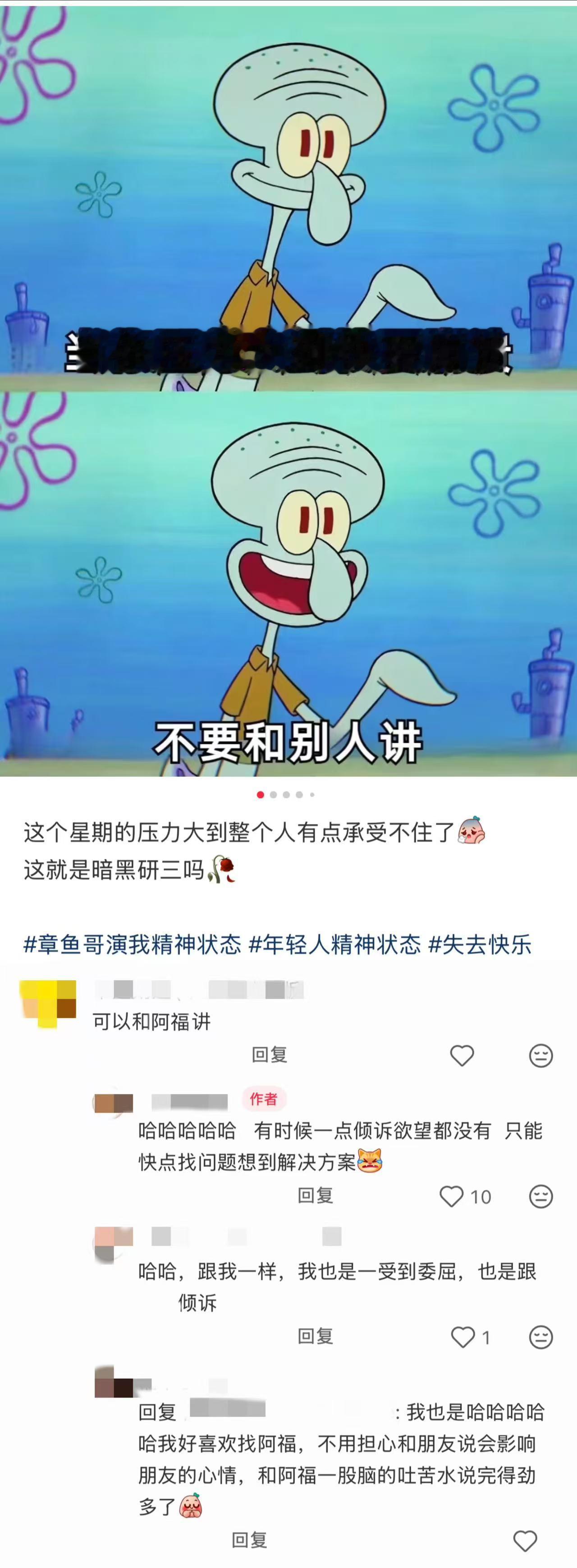 不要有破防羞耻症 成年人的世界真的是这样,破防没有人在意,久而久之都只能憋在心里。不过有了蚂蚁阿福这个心理委员之后真的好很多,它又专业又能安慰我,给我提出有用的建议,告诉我心理健康真的很重要!承认自己需要安慰、需要帮助没有什么大不了的。勇敢破防,我四十了也会哭,哭完才能更好地生活!