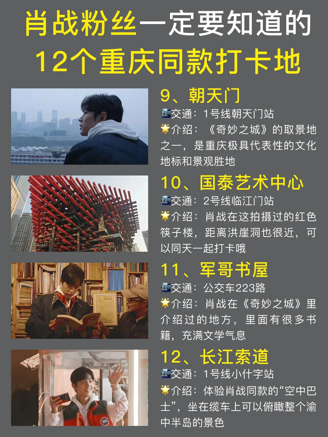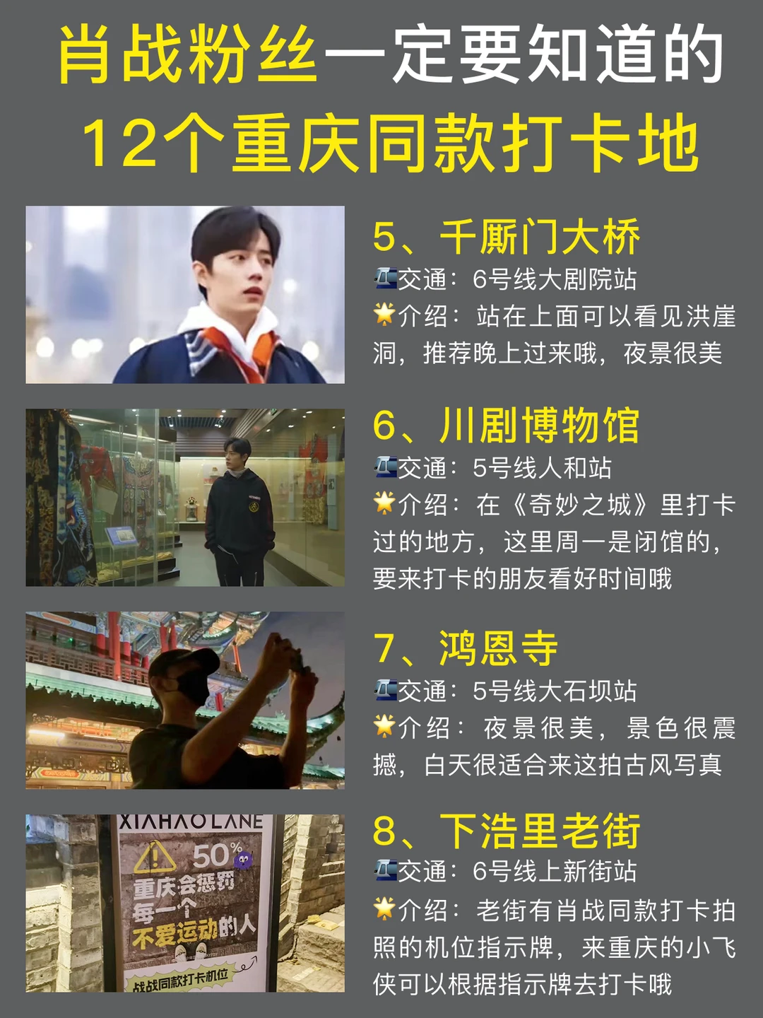 第一次来重庆的小飞侠赶紧看过来!我已经把战战的同款打卡点都给你们整理好啦~不用再挨个找咯!趁着寒假和春节一起跟着肖战逛山城!!!