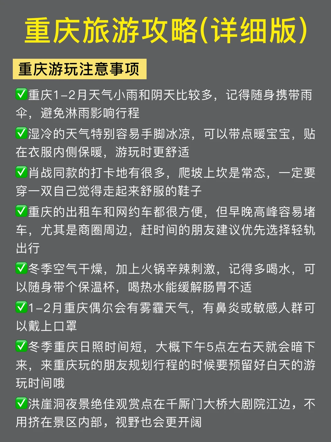 ✅ 重庆1-2月天气小雨和阴天比较多,记得随身携带雨伞,避免淋雨影响行程