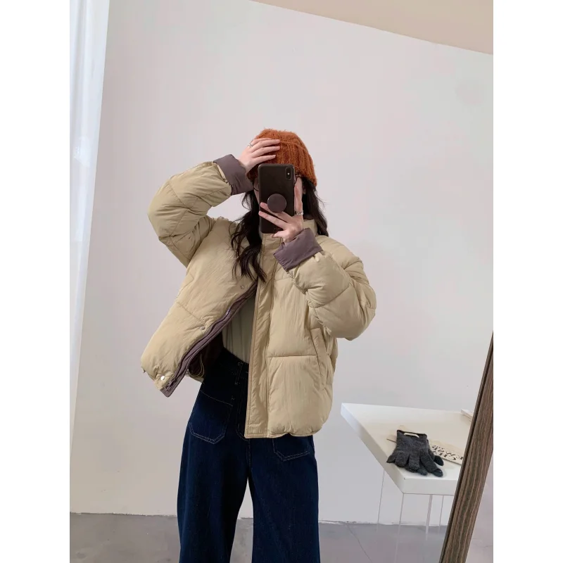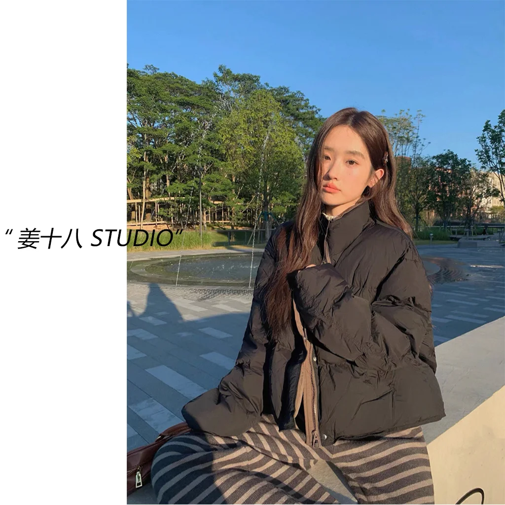 这件加厚立领面包服一上身就被朋友问爆了🔥 韩系版型真的超显高级 纯色设计怎么搭都不会出错 立领防风又保暖 拉链一拉直接锁住温度 里面穿件薄内搭就够 冬天再也不怕冻成狗啦 面料厚实但不显臃肿 穿上身就是那种松松软软的感觉 搭配牛仔裤或者半身裙都好看 休闲又时髦 实拍图给你们参考 真的质感在线!
