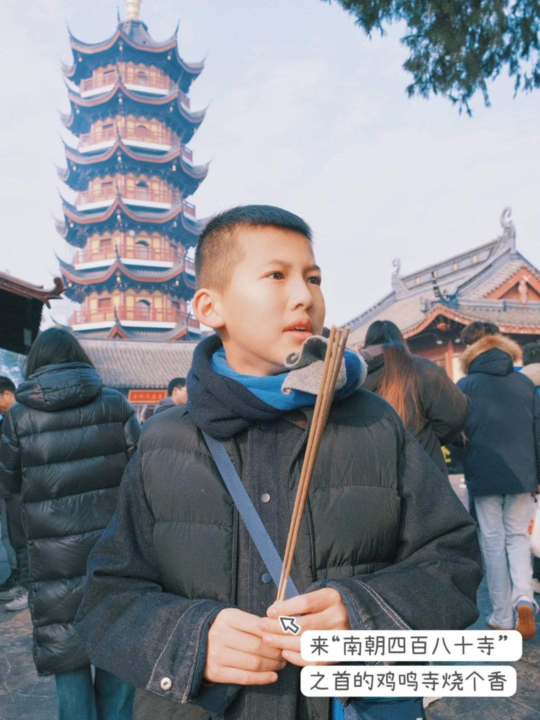 从“古鸡鸣寺”牌坊进入,门口扫码支付10元请三炷香(记得去图10的顶层领香)