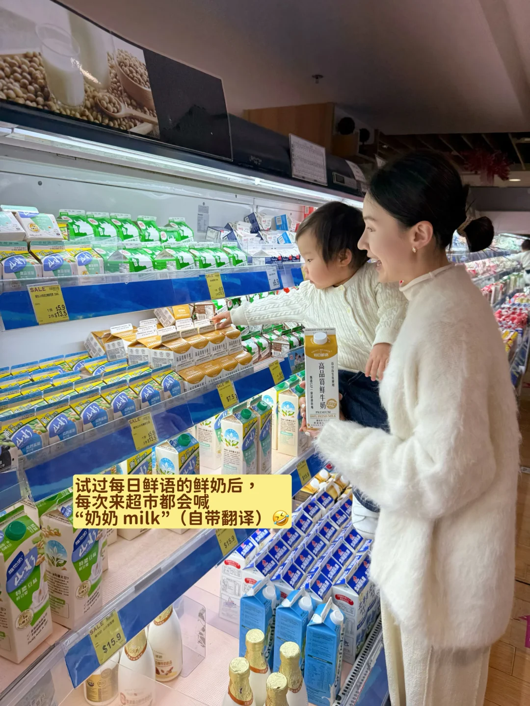 有时候带宝宝出门逛街,在各个便利店、超市也能买到每日鲜语的鲜奶