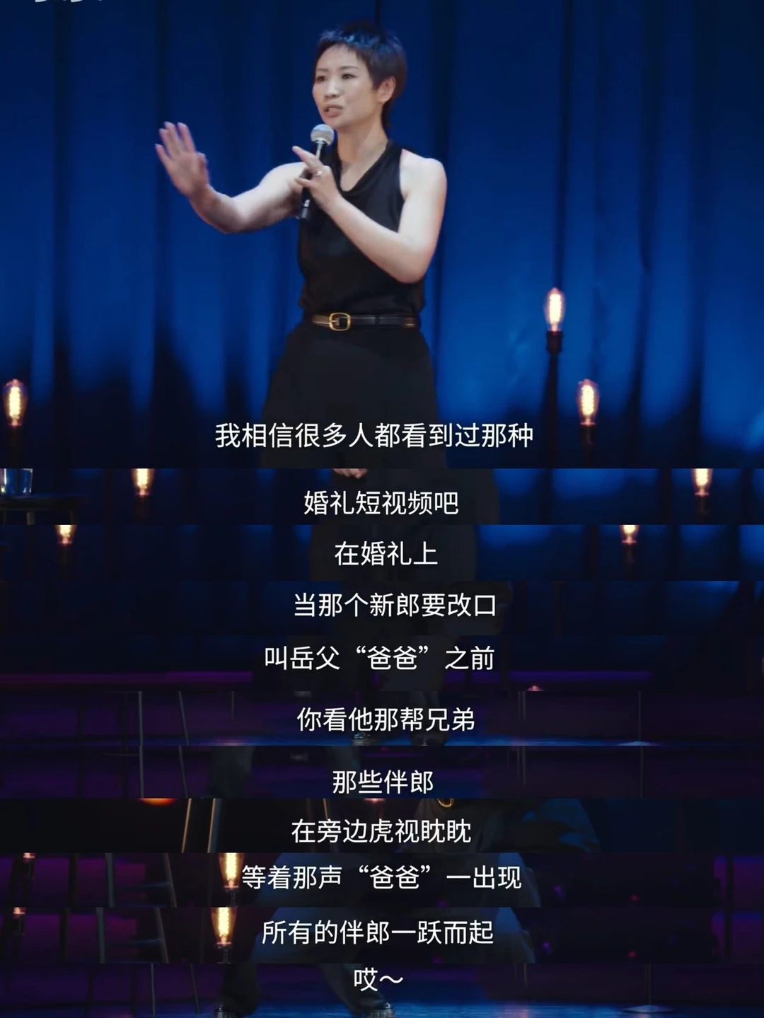 小鹿在《我的中女时代》脱口秀专场里提到这个话题,引起爆笑,尤其是很多婚礼上,新郎改口叫岳父“爸爸”的时候,他的好朋友都会虎视眈眈的应一句“哎~”
