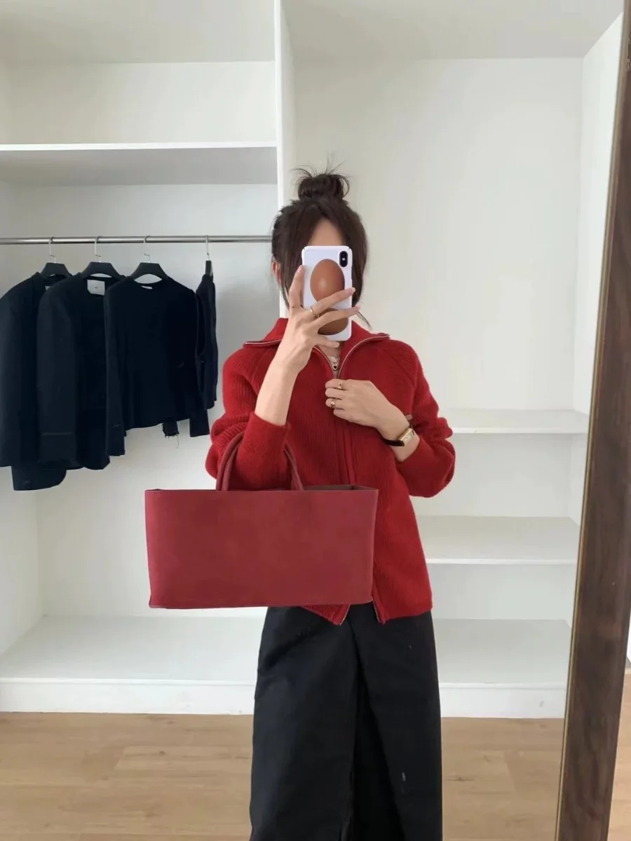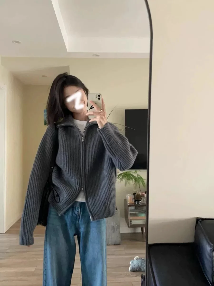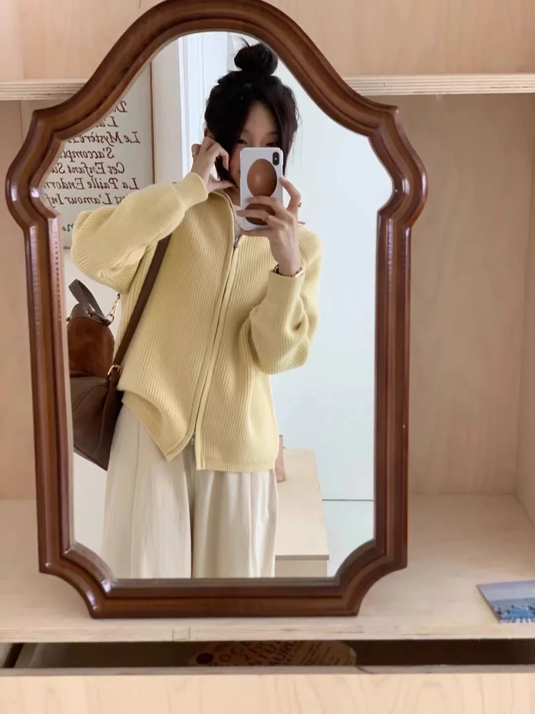 这翻领设计也太独特了吧!![哇R] 羊毛混纺的面料巨软糯,贴身穿一点都不扎人~ 版型真的好好看,上身立马显气质! 做工也特别细致,细节质感拉满~ 秋冬必备这件开衫外套,慵懒又休闲!