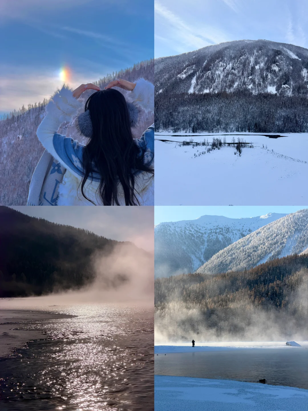 🔹神仙湾、卧龙湾和喀纳斯湖都可以走到湖边,但记得远离冰面等危险区域,安全第[一R]