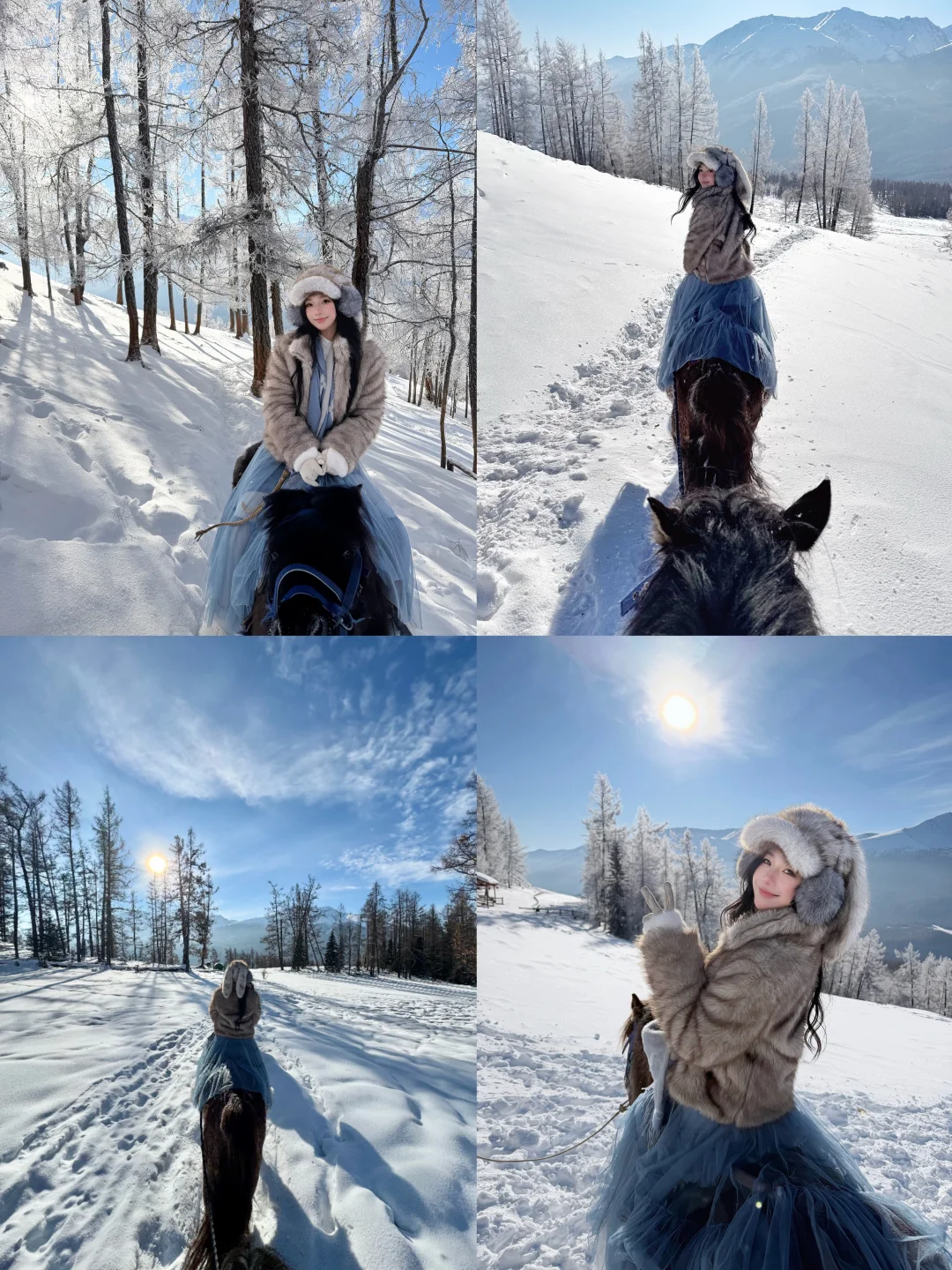 冬季只能骑马上观鱼台(1.5小时往返300元/人),穿梭在雪山林海中是很特别的体验