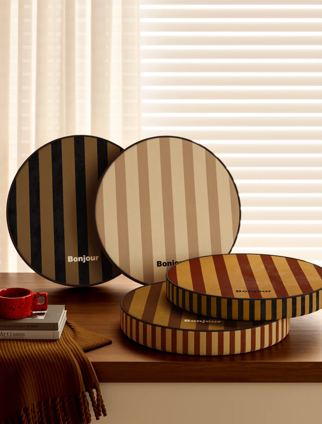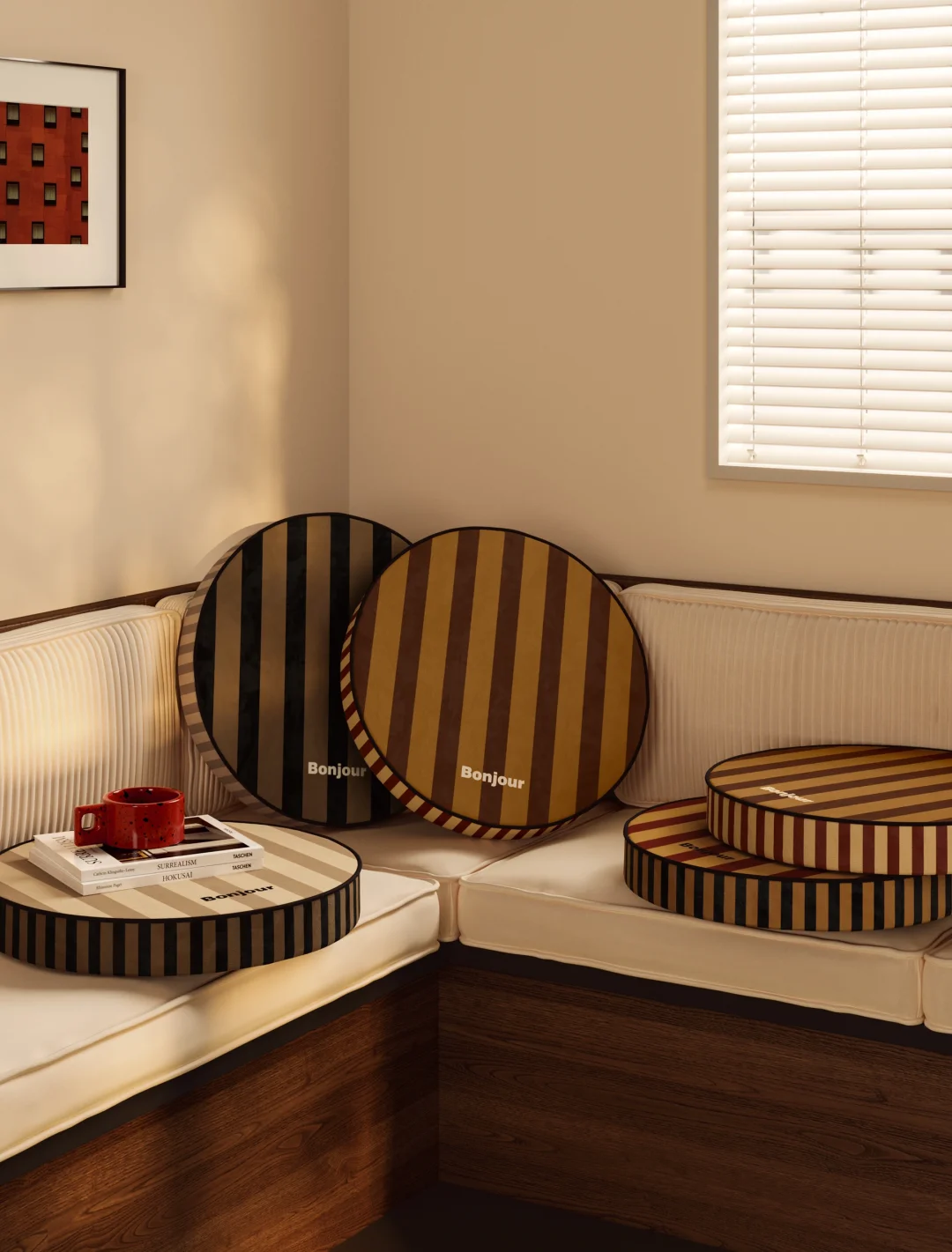 复古腔调的条纹元素✨ 搭配撞色拼接好特别 暖棕色调满载慵懒质感 粗细条纹秩序排列别具韵律美 轻复古撞色拿捏时髦腔调 为中古风小家注入满满氛围感