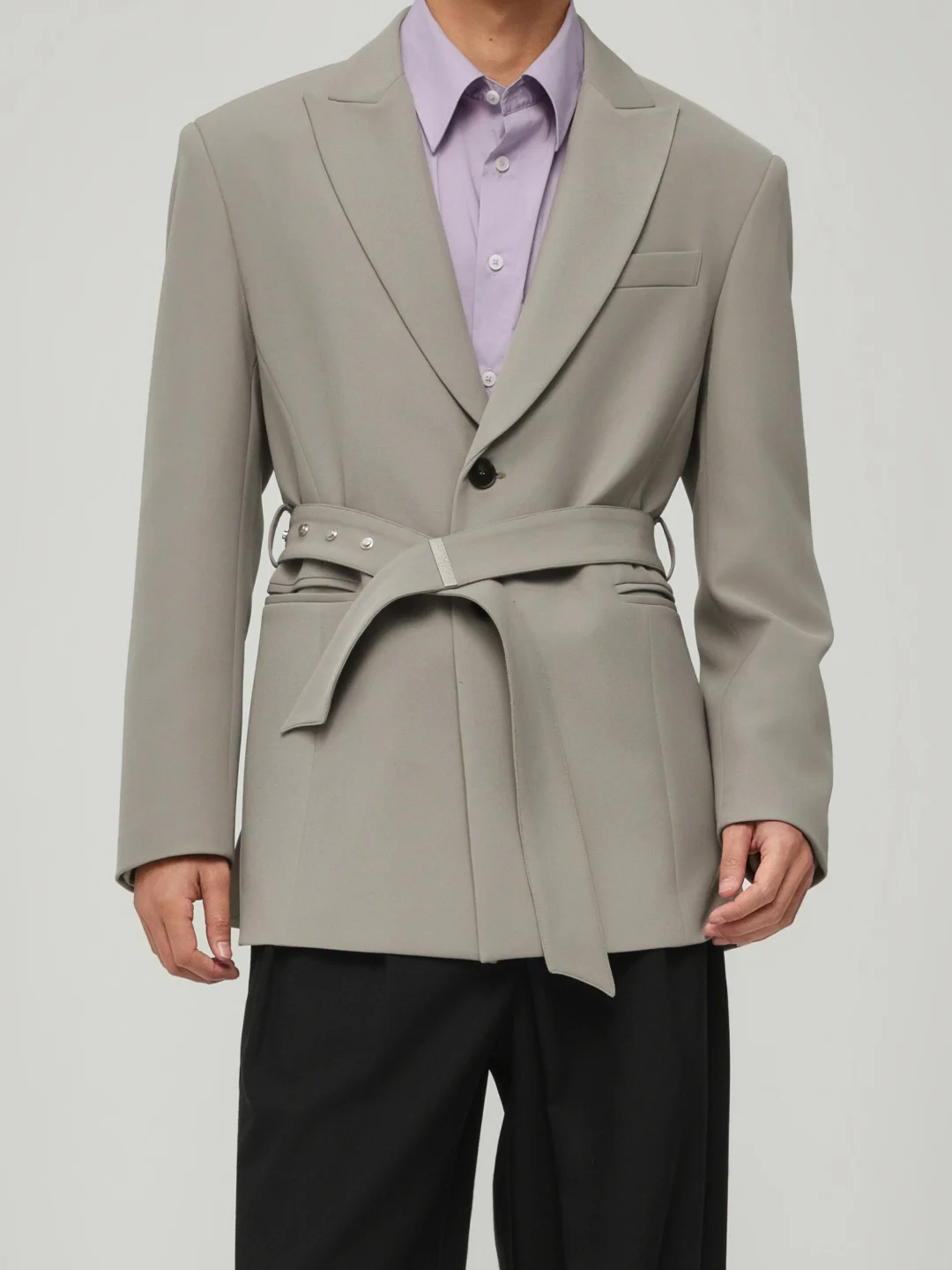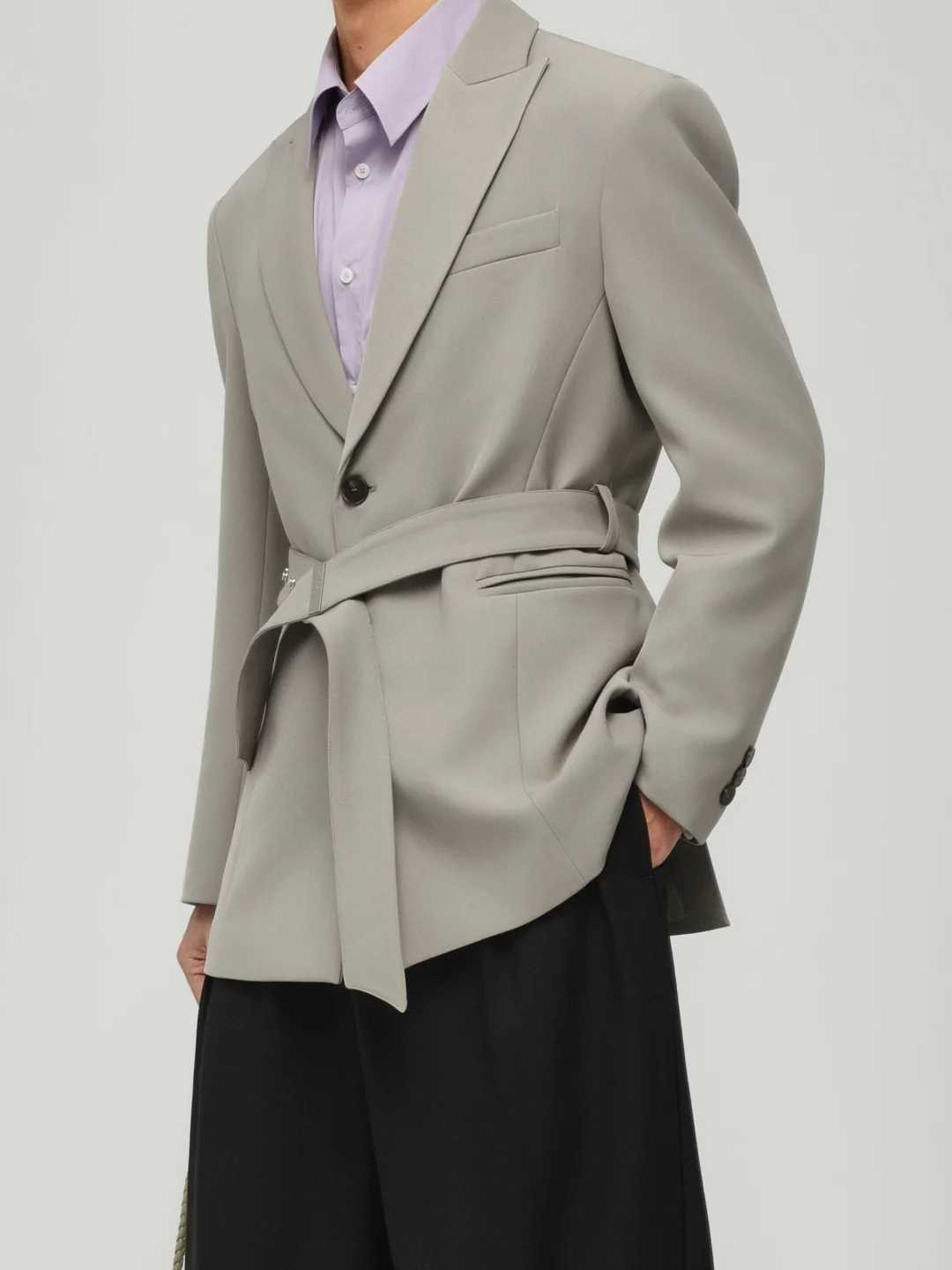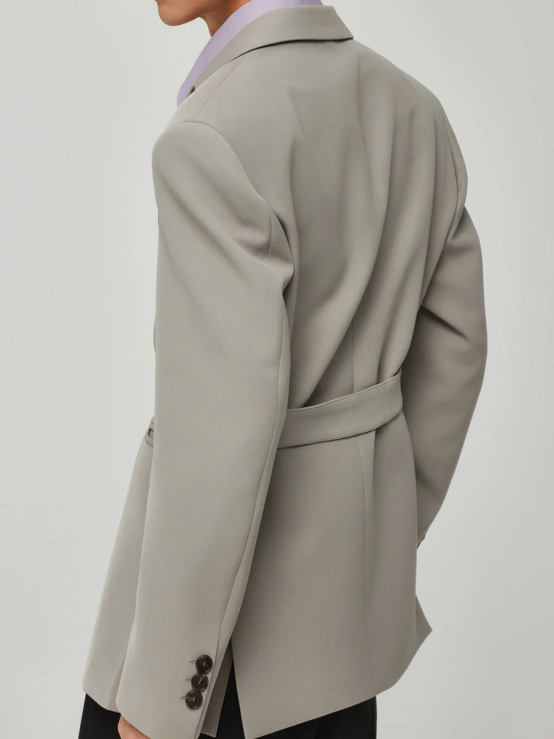 这套穿搭真的太懂“温柔杀”了!如果说黑色西装是职场的铠甲,那这件米灰色系带西服就是都市里的浪漫诗篇。📖