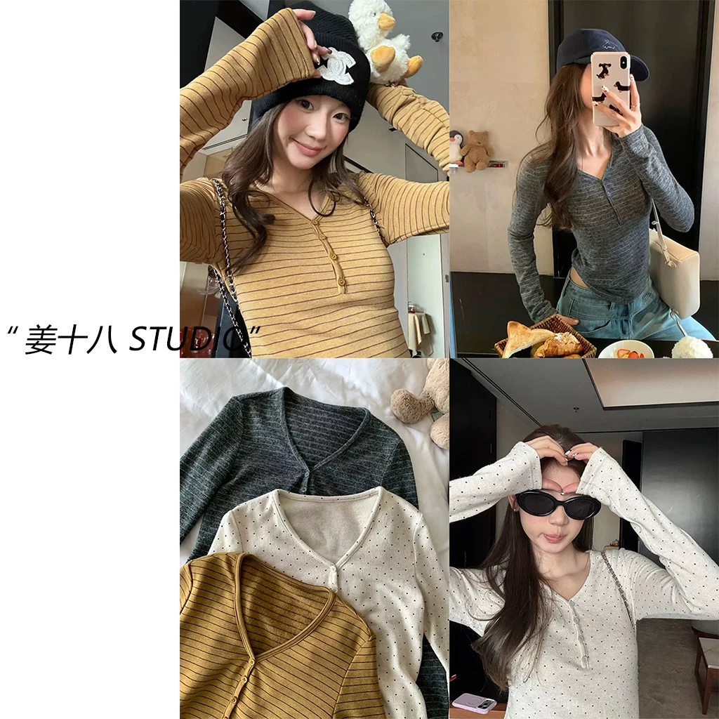 听劝前:打底衫而已,能有多惊艳🤔 穿上后直接爱不释手!! 羊绒棉质亲肤到像被云朵包裹~ V领设计太绝了,拉长脖颈线条,显瘦效果拉满! 修身版型贴合但不紧绷,腰身曲线勾勒得刚刚好✨ 手感柔软舒适,贴身穿一天都零负担。 高质感打底衫真的名不虚传,单穿内搭都超有型! 合身百搭实用,配牛仔裤、半裙都好看~ 衣柜里必备的万能内搭就是它了!