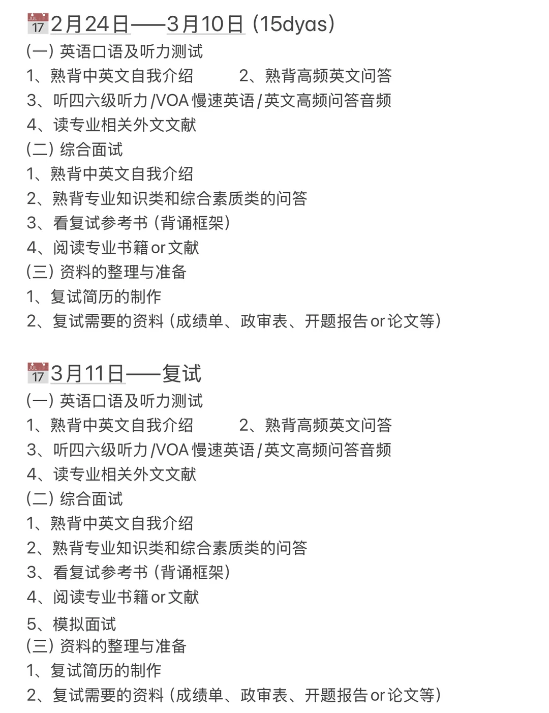 2、整理和收集复试资料