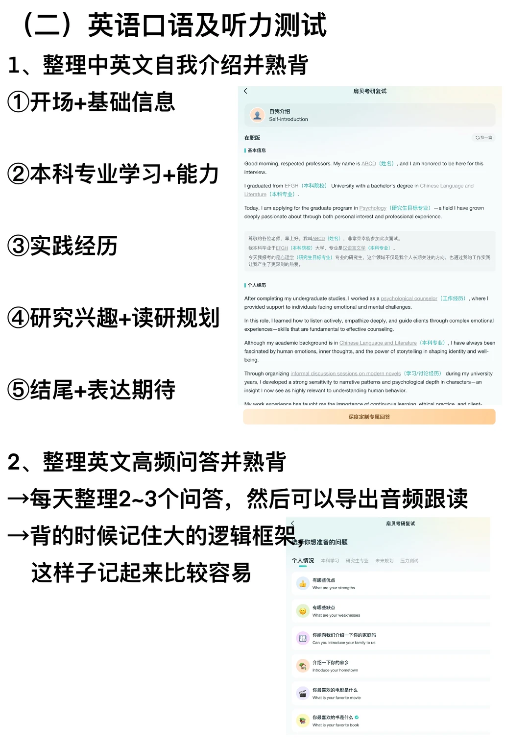 2、整理英文高频问答并熟背
