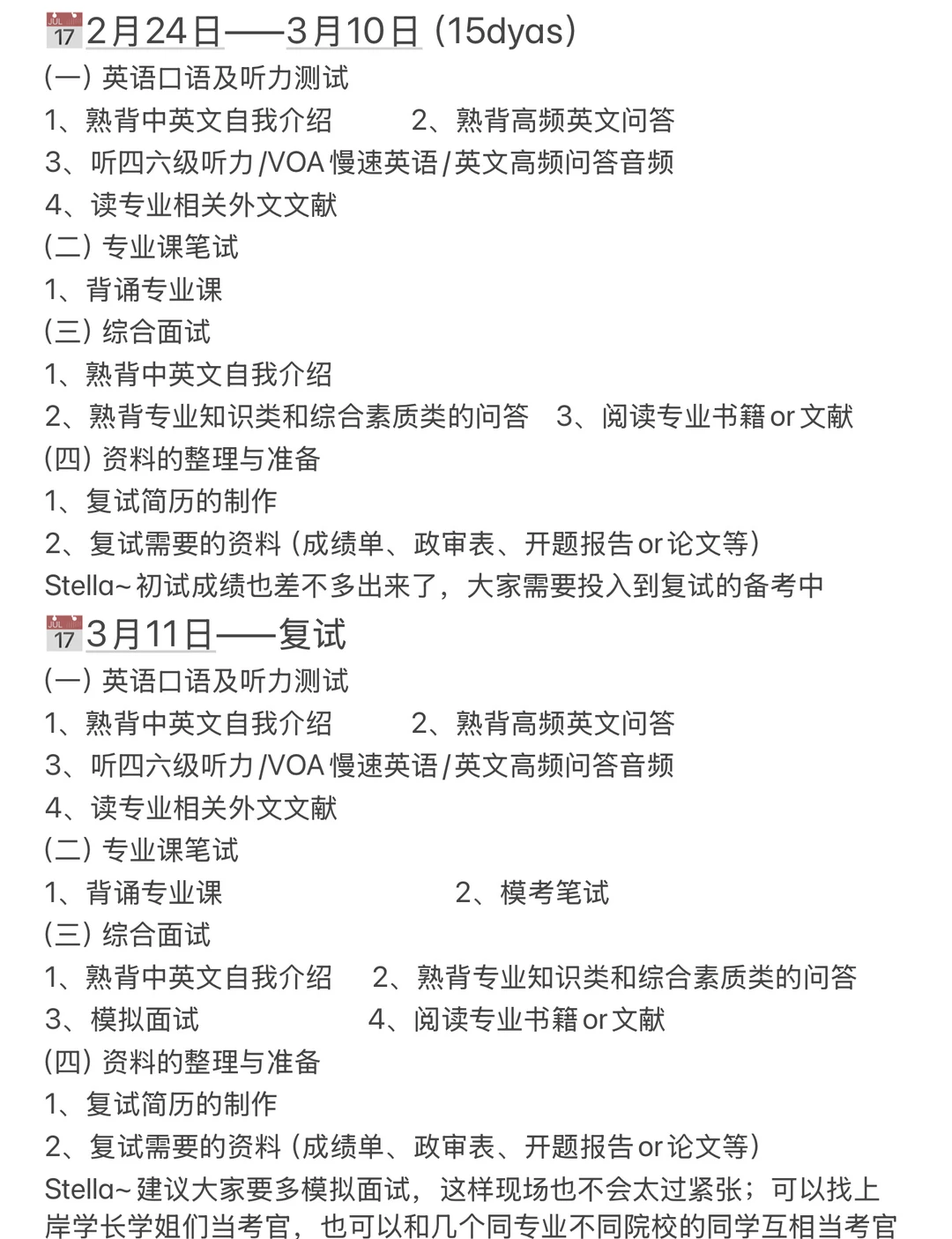 ✨Stella为大家准备了两种从现在开始备考的规划→需要笔试和无需笔试(区别在于是否需要准备专业课笔试以及在综合面试中加入专业课的备考)