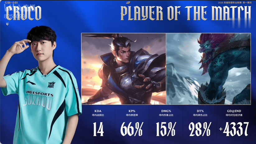 虎扑01月28日讯降维打击!Croco操刀赵信巨魔拿到LNG对阵OMG全场MVP