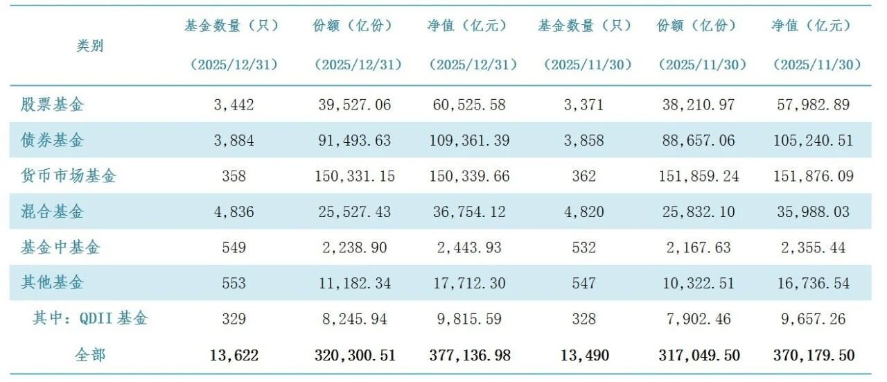 格隆汇1月28日|中基协发布数据,截至2025年12月底,我国境内公募基金管理机构共165家,其中基金管理公司150家,取得公募资格的资产管理机构15家。以上机构管理的公募基金资产净值合计37.71万亿元,较2024年12月底的32.83万亿元增长了4.9万亿元。