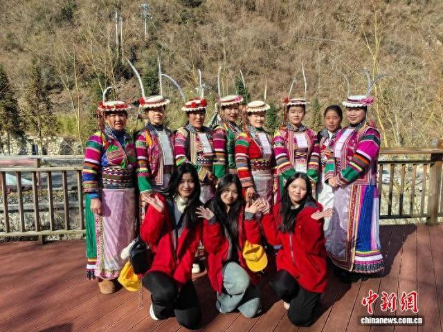 2025年12月11日,甘肃陇南市,来自泰国、菲律宾、阿联酋的青少年,与当地白马藏族展开交流。(资料图)李云霞摄