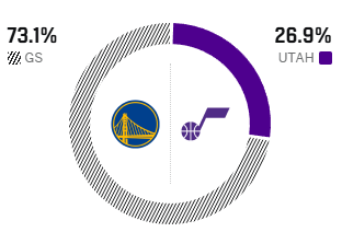 ESPN预测明日比赛胜率:勇士高达73.1%,而爵士仅为26.9%