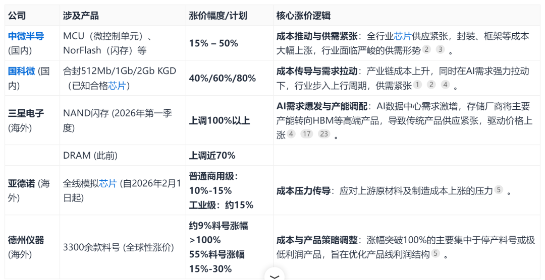 满屏涨价,资源涨完半导体涨,于是让AI小二梳理了近期宣布涨价的产品,涨价潮啊!