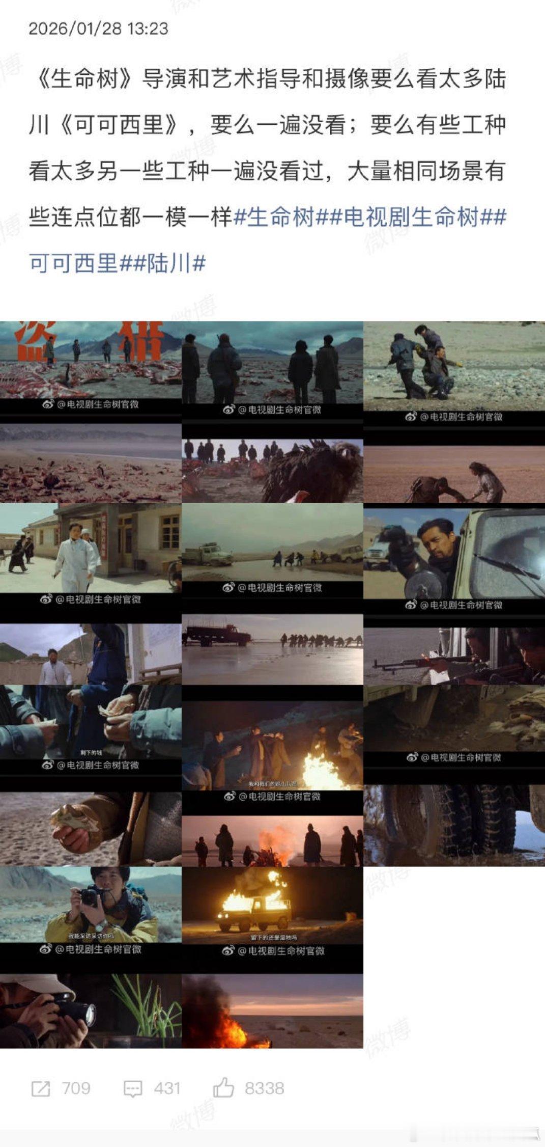 投:杨紫 胡歌《生命树》剧情和分镜被网友说致敬《可可西里》了,这会不会有点儿牵强
