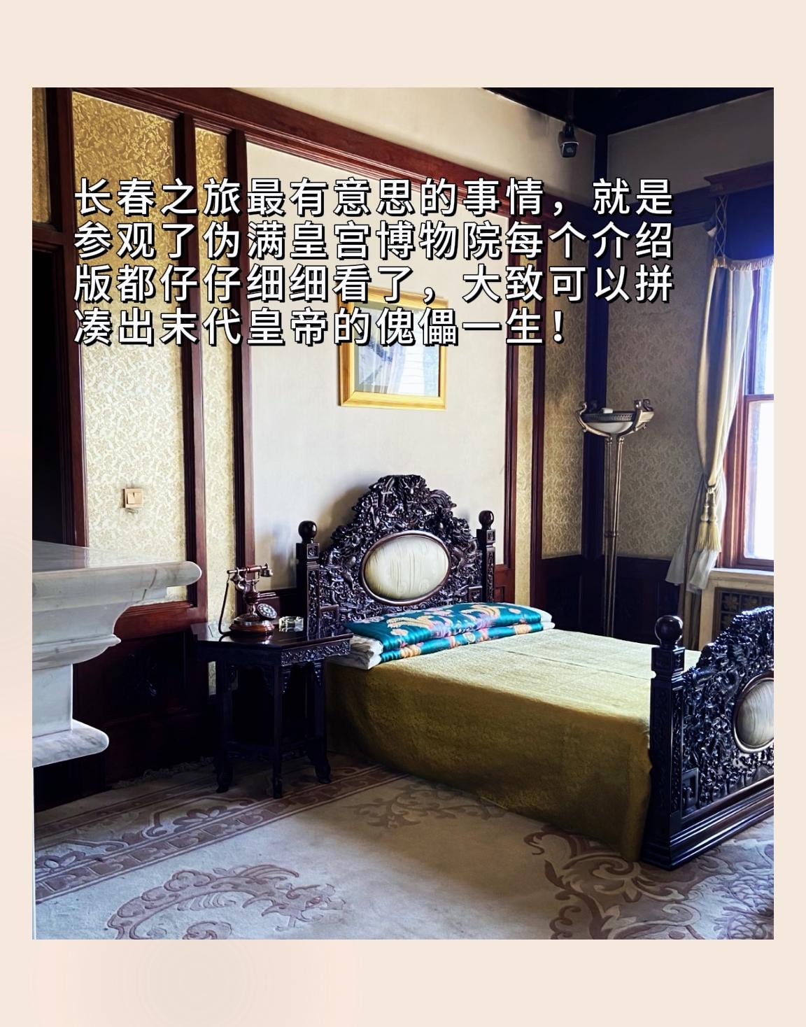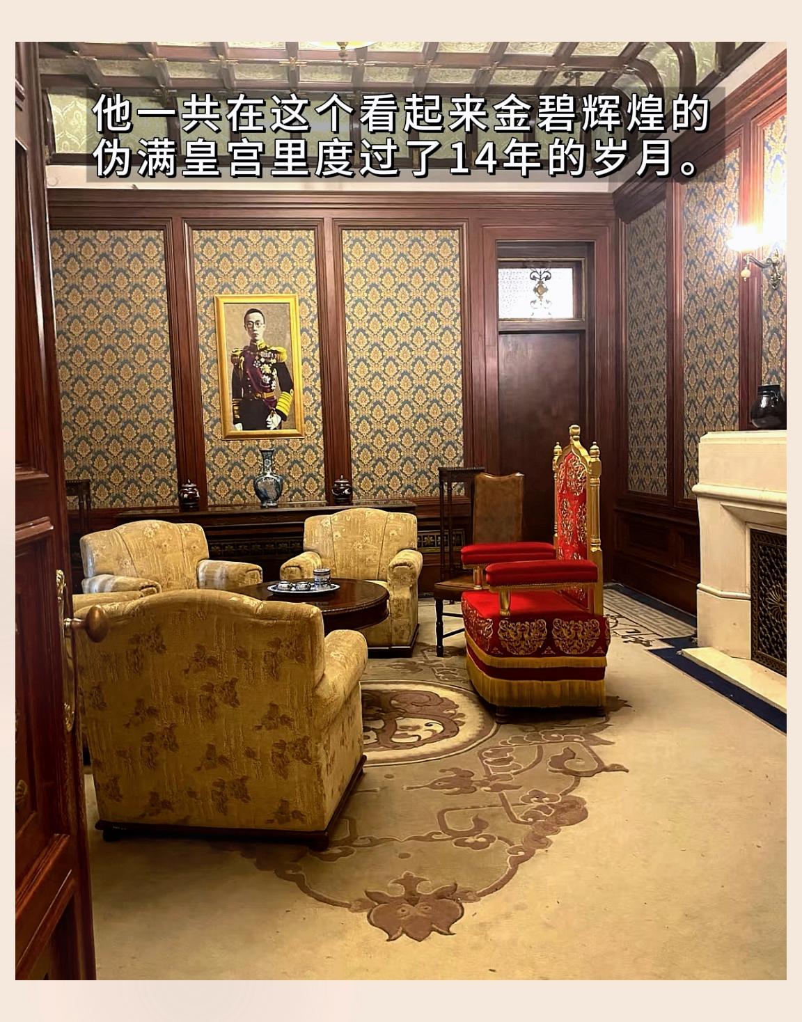 溥仪你小子—落难还住这么好! 参观了伪满皇宫博物院每个介绍版都仔仔细细看了 大致可以拼凑出末代皇帝的傀儡一生,说他可怜的人都可以来这里看看…哪怕在落魄的日子里他的日子也是超出想象的奢华。 听说溥仪住在伪满洲国的日子里曾经希望能有个自己的孩子所以买了很多荷尔蒙 大剂量注射。 但持续了一段时间之后仍无效果 他就放弃了,他一共在这个看起来金碧辉煌的伪满皇宫里度过了14年的岁月!