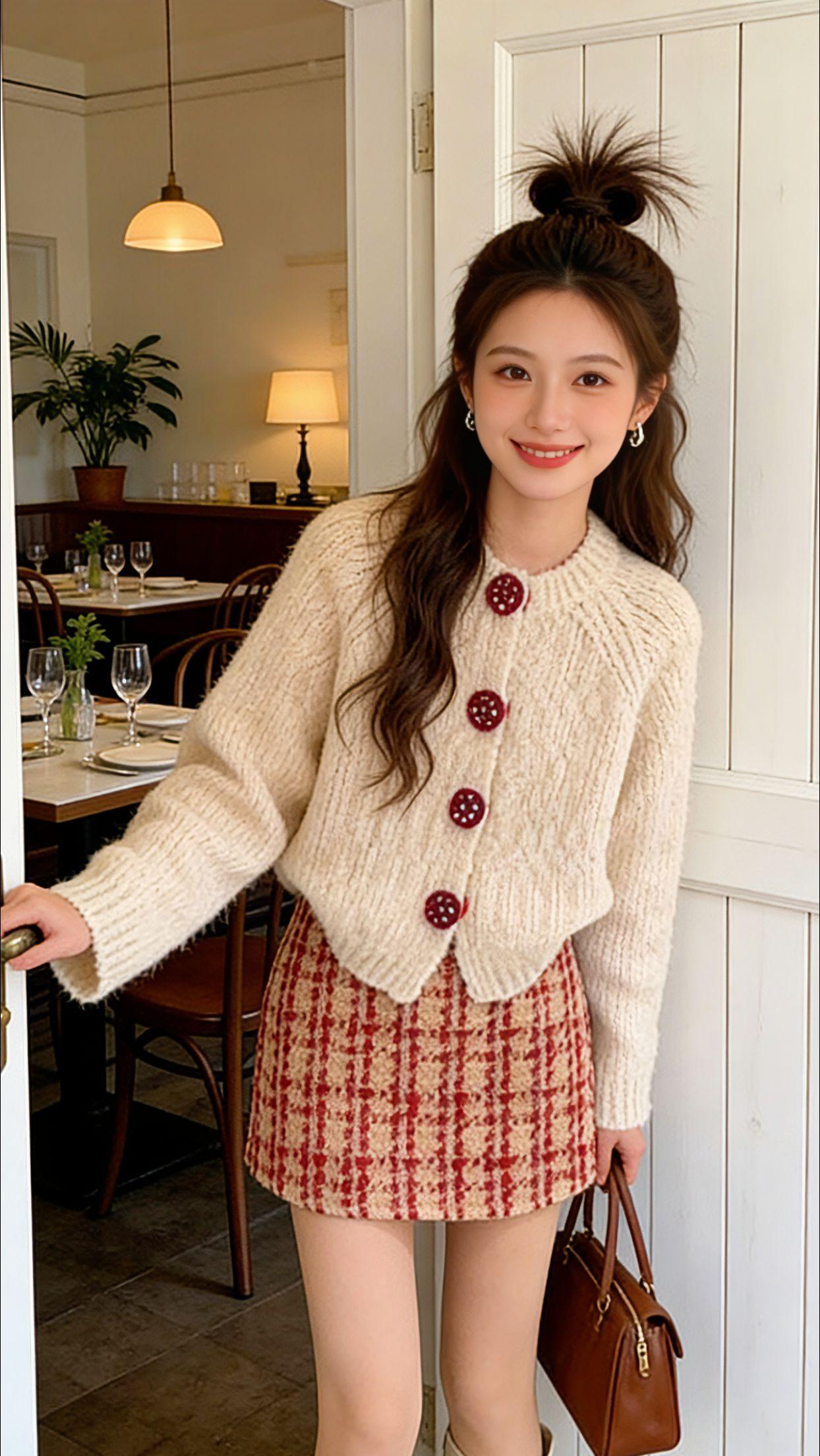 Danny周末和闺蜜逛完街躲进暖乎乎的咖啡馆,身上这套米白针织开衫+红格半裙被问了一路。软fufu的开衫显嫩又保暖,格纹半裙自带甜妹滤镜,配长靴刚好遮住小腿肉肉,随手拍都温柔到发光✨ 不管是约会还是探店都适配,一套搞定冬日出门穿搭,不用纠结搭配的快乐谁懂!软乎乎的质感贴身穿也舒服,氛围感直接拉满,怕冷又想美的姐妹可以安排啦~ 过年穿什么 新年战袍选好了 温柔穿搭 让人眼前一亮的跨年约会穿搭 韩系穿搭 @抖加🔥上热门🔥dou+🔥热点宝