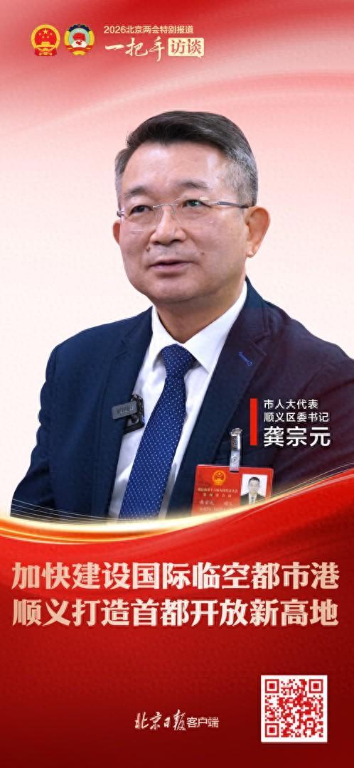 龚宗元说,2026年,顺义区将加快推动国际临空都市港的建设,助力首都机场世界级航空枢纽的建设,实施315个时刻扩容方案,巩固临空经济全国领跑的地位。顺义区已经构建起了“5+4”现代化产业体系,将保障奔驰GLE、理想纯电i9新车型顺利上市,依托罗罗发动机维修项目做大做强航空服务业生态圈,做好“会展+”文章,全年办展面积不少于330万平方米。顺义区今年还将推进京密高速二期三期、新国展联络线等工程建设,实现顺平快速路、R4线一期北段开工,继续深化基层治理实践创新,营造“顺义好风气”。