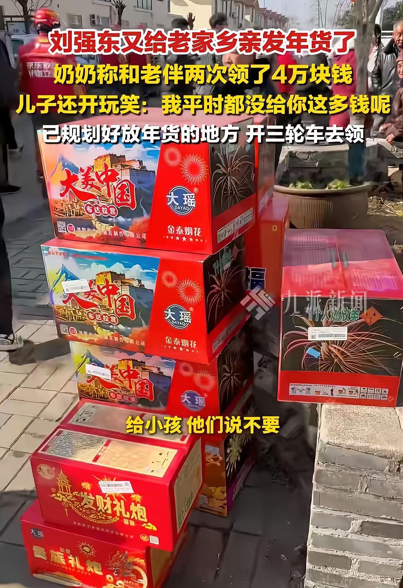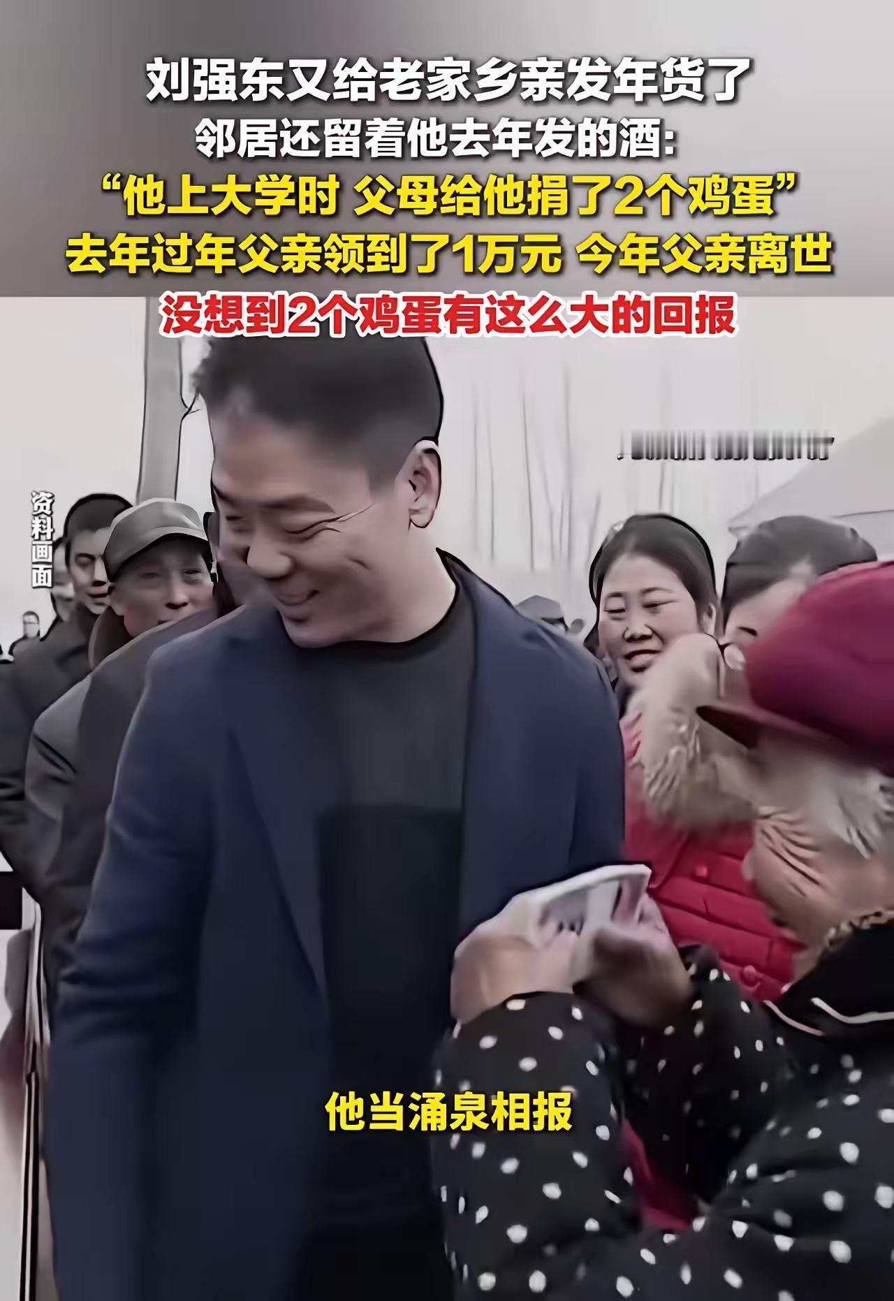 这才是真正的“富而不忘本”!刘强东又给老家乡亲发年货了,一个老奶奶说:“我和老伴两个人领了4万块钱,儿子平时都没给我们这么多钱呢!”网友:这才是实实在在的扶持!假如有一天刘总有困难发不起年货希望乡亲们能理解! 这才是真正的“富而不忘本”!刘强东又一次用行动温暖了家乡,用真情传递了责任感。就在近日,京东创始人刘强东再次慷慨解囊,为家乡的乡亲们送去满满的年货和祝福。简单的一份心意,却折射出他对故土深深的牵挂与责任。 一位年迈的老奶奶激动地说:“我和老伴两个人领了4万块钱的年货礼包,比平时儿子给我们的钱还多呢!”听到这话,现场的每一个人都被深深触动。这不仅仅是一份物质上的帮助,更是一份精神上的慰藉和温暖。老人们用朴实的话语,表达了对刘总的感激,也让人看到了一个企业家的社会责任感。 网友们纷纷点赞:“这才是真正的实实在在的扶持!不仅仅是送钱,更是心意和责任的体现。”有人说:“这样的善举,温暖了整个社会,也让我们相信,企业的力量可以成为推动社会正能量的重要力量。”更有人调侃:“如果有一天刘总也遇到困难,发不起年货,希望乡亲们能理解,毕竟,善心是相互的。” 这番话虽带着调侃,但也点出了一个深刻的道理:善良和责任,应该是每一个有能力人的担当。而刘强东的行动,正是用最实际的方式,践行了“富而不忘本”的真谛。他没有忘记自己的根,没有忘记那片养育他的土地,也没有忘记那些默默付出、需要帮助的人。 其实,这样的善举不仅仅是一次物质上的帮助,更是一种精神的传递。它告诉我们,无论身处何地,身为社会的一份子,都应心怀感恩,勇于承担。也许我们无法像刘总那样每年都送出大礼包,但我们可以从身边的小事做起,传递善意,温暖他人。 更值得期待的是:如果有一天,企业家、社会各界都能像刘强东一样,将“责任”融入到行动中,那么这个社会会变得更加温暖、更加有希望。毕竟,善良和责任,是我们每个人都可以拥有的力量。 所以,让我们记住这份温暖,传递这份善意。也许,下一个感动的故事,就会在我们身边悄然发生。而我们,也都可以成为那个传递温暖的人。因为,真正的富有,不仅仅是财富的积累,更是心中的那份责任与善良。